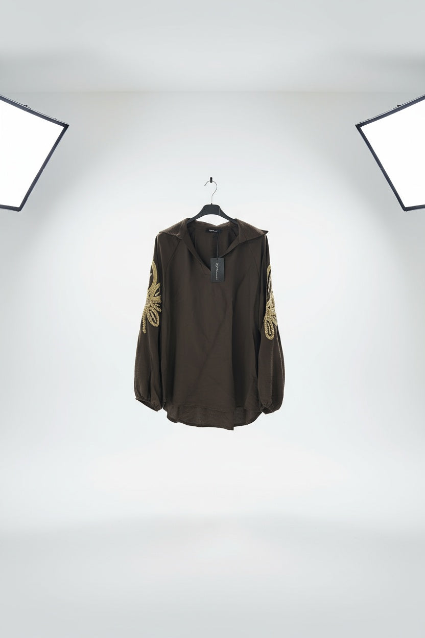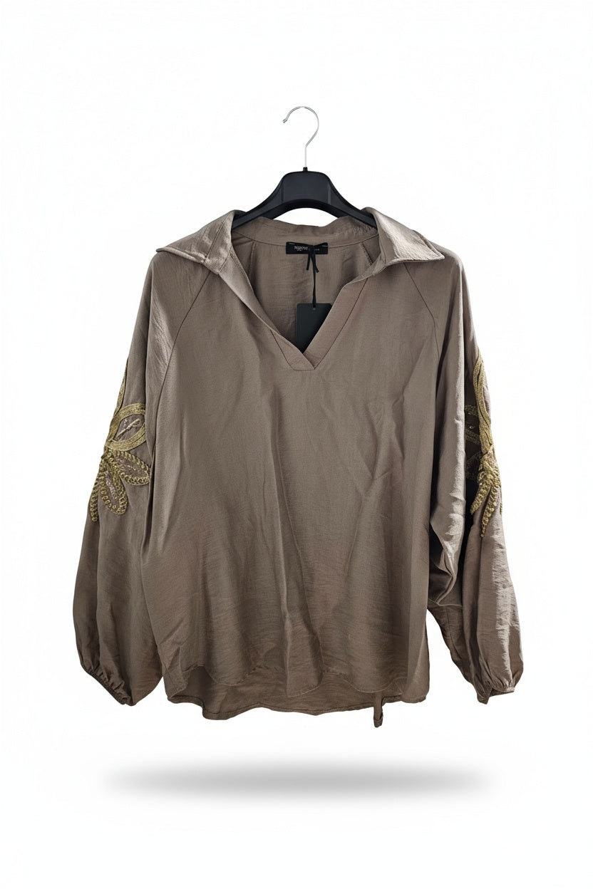 Deze mooie blouse met een hele mooie borduursel op de mouw wil je gewoon hebben!