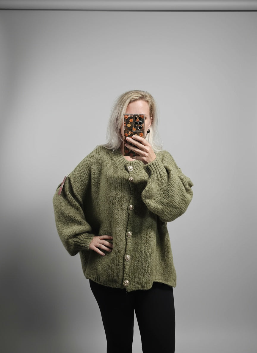 Dit een geweldig vest met leuke gouden knopen en hij kriebelt niet!